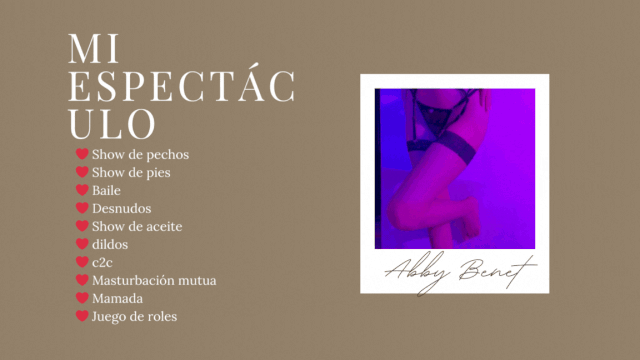 You can ASK FOR A DATE with Abby Benet at your convenience. Everything is in your timezone, your local hours. She will receive your request and accept it if her schedule is free. You will receive a confirmation via email and you can prepare for your hot experience.